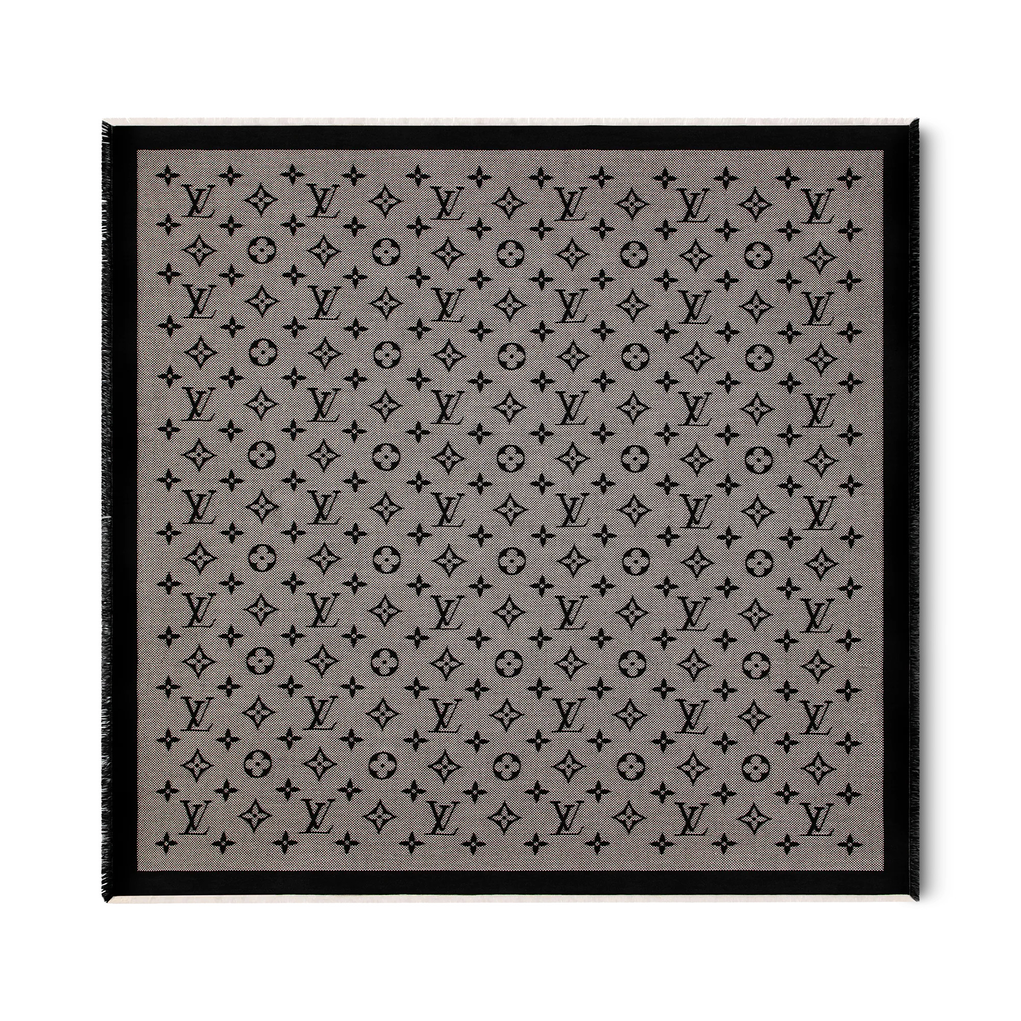 The Neo Natté Monogram shawl offers a refreshing update on a classic design. A large-scale Monogram pattern contrasts against the natté fabric for a textured effect, while the blend of silk and wool provides lightweight warmth. Contrasting fringe trim and a woven Louis Vuitton signature finish the piece in style. Detailed Features - Black - Allover Monogram jacquard weave - Contrasted Louis Vuitton signature at bottom - Fringe finish - Dry clean only Length: 56.1 inches Height: 56.1 inches