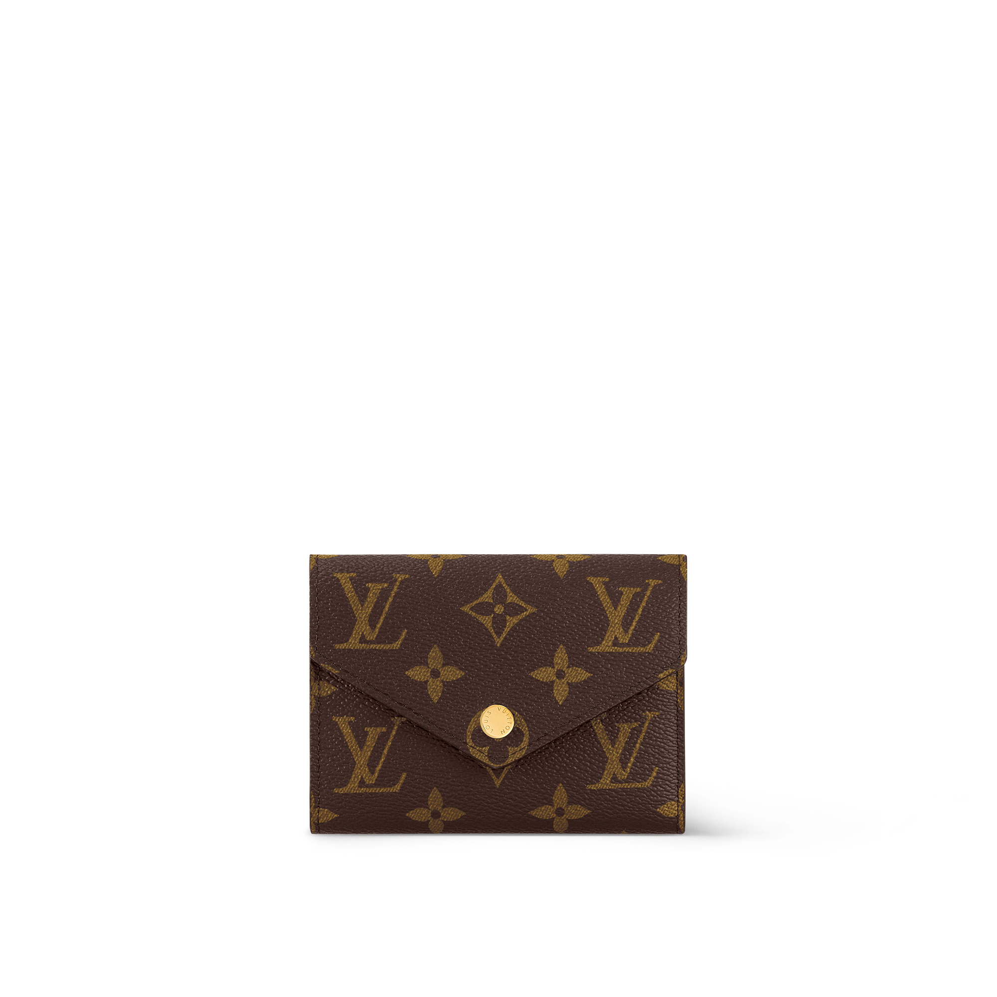 The compact Victorine wallet in Monogram canvas combines femininity and functionality. It opens out to reveal many practical features, including card slots and pockets for bills and coins. Its envelope-style flap is sealed with a press-stud.The piece is either finished with a gold or color-matched press-stud. Detailed Features - Monogram coated canvas - Grained cowhide-leather trim - Grained cowhide-leather lining - Gold-color hardware - Press-stud closure - Zipped coin pocket - Bill pocket - 2 flat pockets - 6 card slots - The reference is either made in France, Spain, Italy or in the US. Length: 4.7 inches Height: 3.7 inches Width: 0.6 inches
