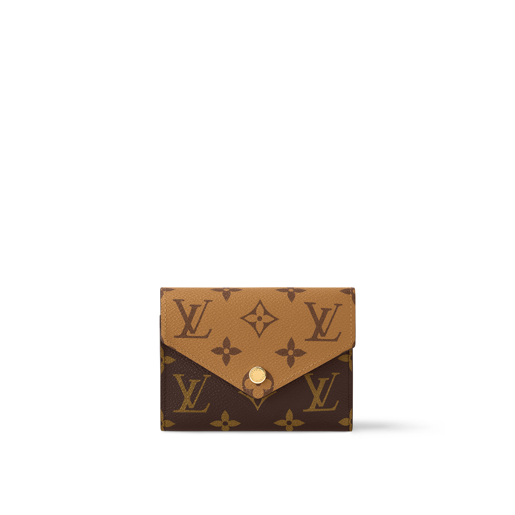 The Victorine wallet in Monogram and Monogram Reverse canvas is a compact, envelope-style design which opens out to reveal a range of practical features. It includes space for bills and cards, and a zipped coin pocket on the side. Detailed Features - Monogram and Monogram Reverse coated canvas - Grained cowhide-leather trim - Grained cowhide-leather lining - Gold-color hardware - Press-stud closure - Zipped coin pocket - Bill pocket - 2 flat pockets - 6 card slots - This reference is either Made in France, Spain, Italy or in the US. Length: 4.7 inches Height: 3.7 inches Width: 0.6 inches
