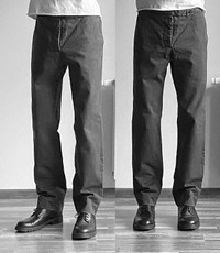 MAISON MARTIN MARGIELA 2007 A/W CLASSIC PANTS IN BLUE HEAVY TWILL COTTON Straight silhouette classic trousers in a mid-weight cotton in a dark navy blue! Very strong and durable fabric, more or less like denim. Size 50. Made in Italy. Very good, vintage condition. waist: 88cm, inseam: 80cm, hem: 20cm PS. Fit pictures is taken from one of the Grailed listings of the same pair of pants.