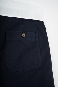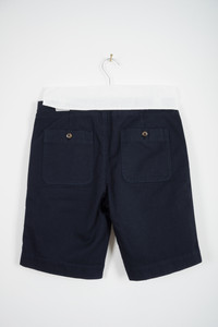 DOPPIAA Dark blue shorts crafted from mid weight japanese twill cotton with drawstring waist and patch back pockets. Fantastic quality, horn buttons. Made in Italy. Size 46, fits true to size (waist around 82). Brand new with tags.