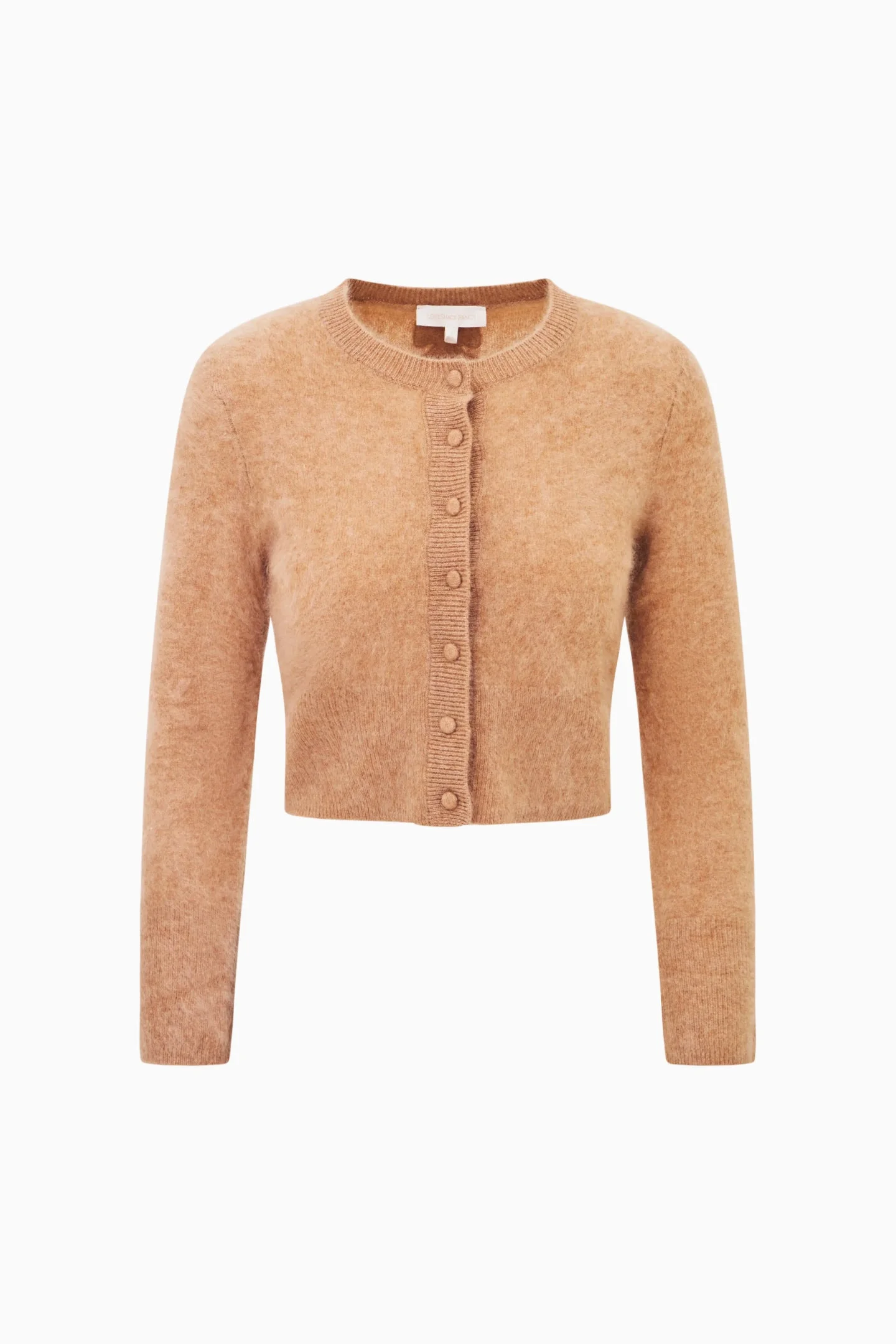 Cozy chic in the Adeanne Cardigan. Designed from a luxe, soft brush cashmere fabric, this must-have knit is the perfect layer for the cold weather season. She features a bow patch on the back and self-covered buttons for a sweet finish. - 100% Cashmere - Self-covered buttons down center front - Crewneck - Full length sleeves DETAILS - 100% Cashmere - Dry Clean Only SIZE & FIT Measurements based on Size S: - Front Length: 18 1/4" - Bust: 16 3/4" - Sweep: 14 3/4" - Sleeve Length: 24 1/4"