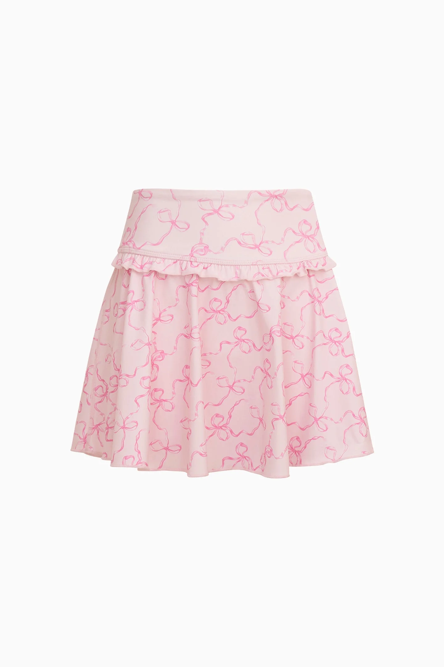 Playtime meets pretty in our new Shanonly Skirt. Designed just for her, this active style features a comfy elastic waistband and built-in shorts so she can twirl, run, and move with ease. Finished with a sweet flounce at the hem for that signature LoveShackFancy charm, it’s perfect for school days, dance class, or weekend adventures — always ready for action, always adorable. DETAILS - Self: 76% Nylon, 24% Spandex - Lining: 94% Polyester, 6% Spandex - Machine Wash Cold with Similar Colors - Tumble Dry Low - Do Not Bleach SIZE & FIT Measurements based on Size 12: - Waist (Relaxed): 12 1/4" - Hip: 13 1/2" - Sweep: 41" - Inseam 2 1/2" - Total Length: 13 3/4"
