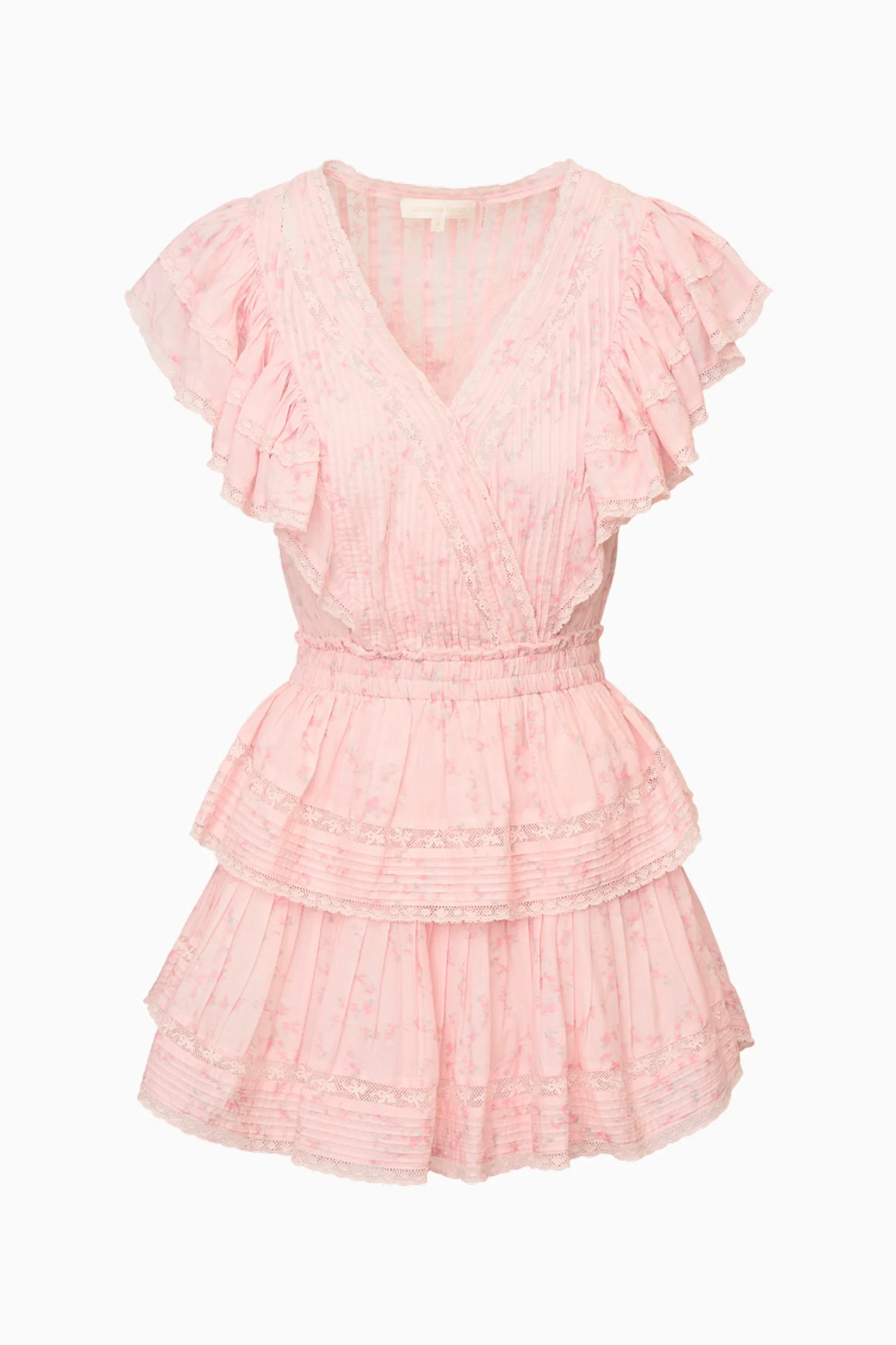 Our Gwen Dress is a sure favorite in cotton with lace embroidery details. This short frock has a faux wrap top, which forms a deep v neckline. Shirred ruffles line the outer edges of the shoulder and bodice, forming flutter sleeves. The skirt is constructed just like our signature Ruffle Mini—with an elastic waist and two flounced tiers. DETAILS - 100% Cotton - Dry Clean or Hand Wash In Cold Water - Do Not Bleach - Lay Flat To Dry - Cool Iron SIZE & FIT Measurements based on Size S: - Front Length: 31 3/4" - Bust: 39" - Waist (Relaxed): 26 3/4" - Low Hip: 42" - Sweep: 98"