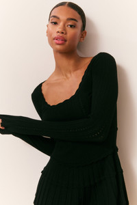 Our best-selling Lavender Dress returns for the fall. Featuring an all-over stitch stretch pointelle, this mini is extra cozy and chic with intricate embroideries all over. The dress has long, slim sleeves, a square neckline, a flattering, body-skimming bodice that falls to an airy skirt. - Slim sleeves - Fitted body DETAILS - 63% Viscose, 35% Polyester, 2% Spandex - Dry Clean or Hand Wash in Cold Water SIZE & FIT Measurements based on Size S: - Front Dress Length: 30 1/2" - Bust: 28" - Waist: 27" - Sleeve Length: 24 1/4"
