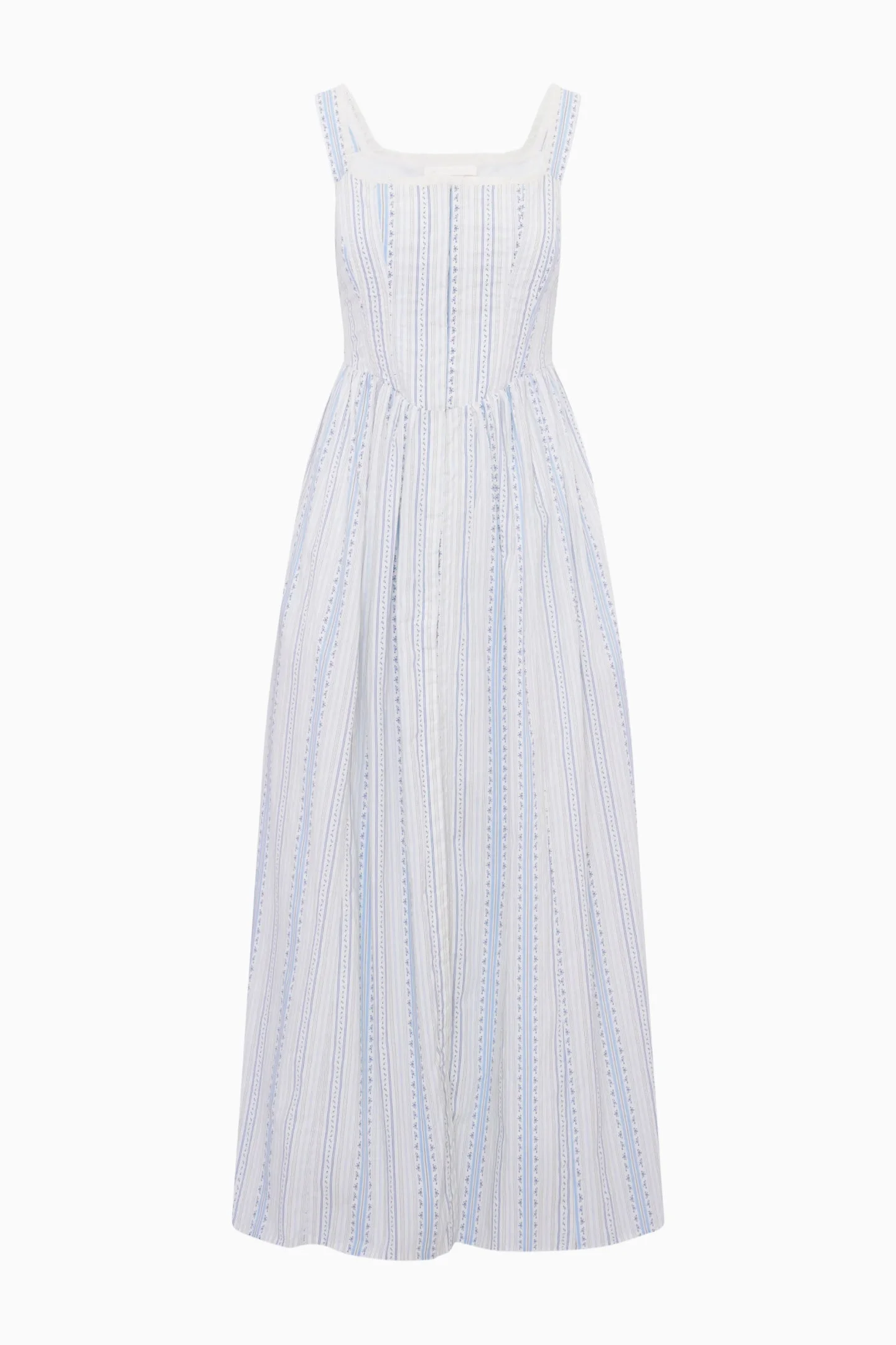 Timelessness and effortlessness meet in our Majory Bustier Midi Dress, featuring a square neckline and slender straps. Lightweight woven fabric settles into a fit that’s perfect for everyday wear. With a natural drape and a clean straight hem, it’s a classic piece that never goes out of style. Details: - Sleeveless - Square neckline - Midi length - Invisible side zipper DETAILS - SHELL: 100% COTTON - LINING: 97% POLYESTER, 3% SPANDEX - HAND WASH COLD - DO NOT BLEACH - LAY FLAT TO DRY - COOL IRON - DRY CLEAN IF NEEDED SIZE & FIT Measurements based on Size 4: - Length: 51" - Bust: 33 1/2" - Waist: 28 1/2" - Low Hip: 54" - Sweep: 78"