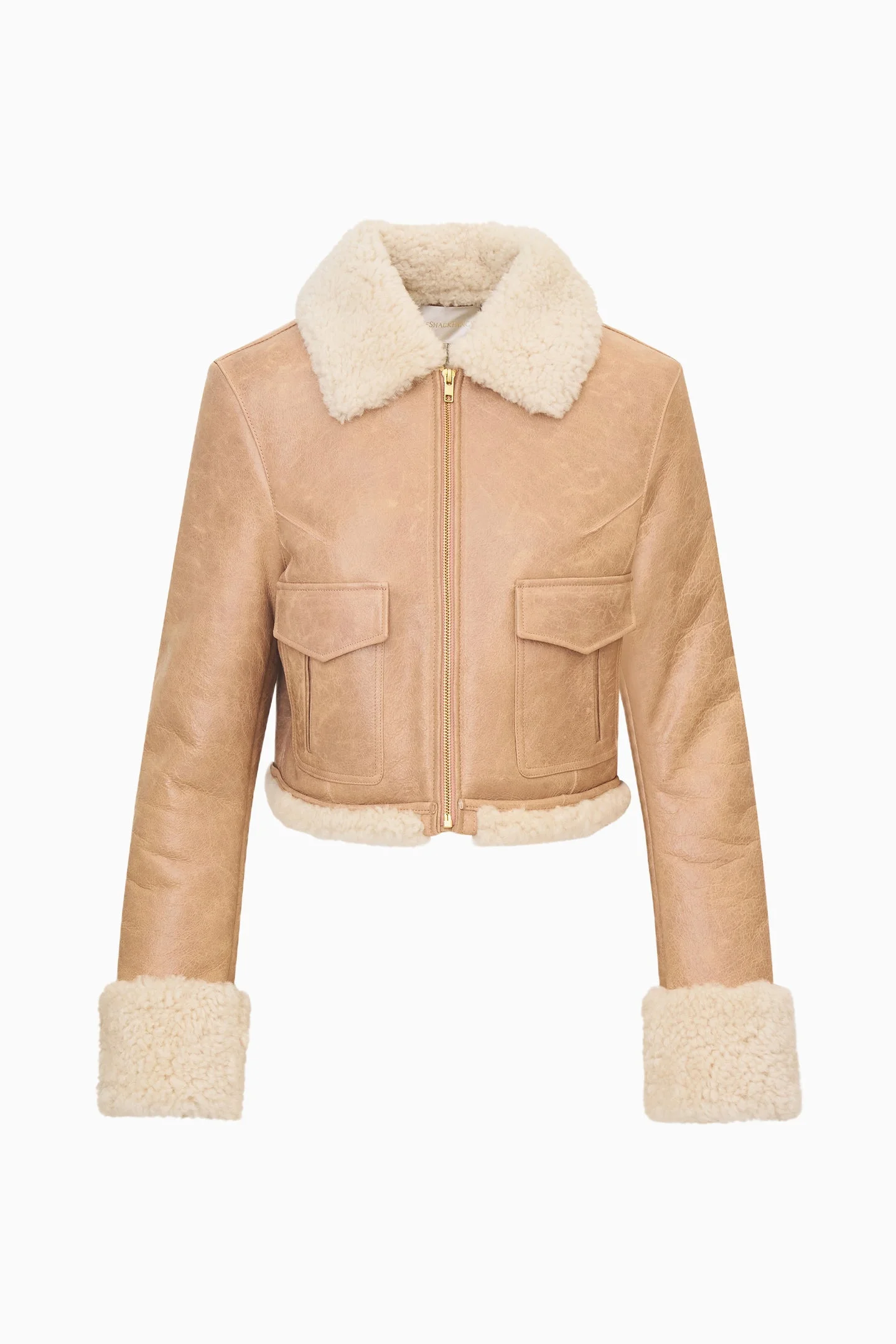 The Pansy Jacket returns in a chic new tonal palette, crafted in buttery soft 100% lamb with plush shearling at the collar and sleeve cuffs. This Western-inspired silhouette blends structure with cozy texture, featuring a tailored fit and refined details that make it both timeless and modern. The tonal update brings a fresh, polished edge to this beloved classic, perfect for layering through the season. - 100% Lamb - Tailored fit with structured collar - Shearling at collar and sleeve cuffs - Plush, soft texture DETAILS - Shell: 100% Real Dyed Lamb Fur - Lining: 94% Polyester 6% Spandex - Professional Clean By Fur Specialist SIZE & FIT Measurements based on Size S: - Bust: 39" - Length: 19" - Shoulder: 16 3/24" - Sleeve Length: 24 1/2"