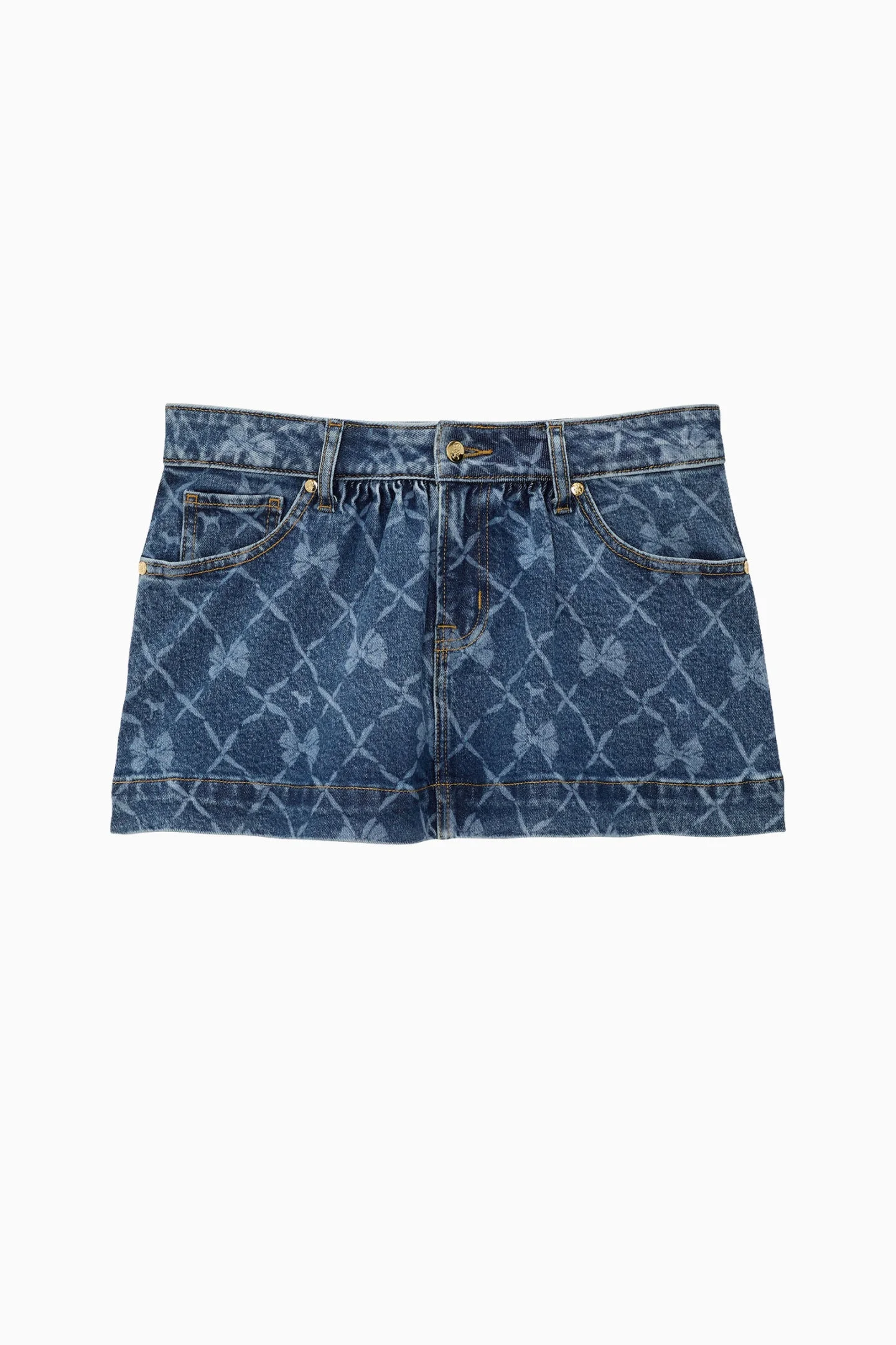Introducing the Denim Skirt from the exclusive, limited-edition PINK x LoveShackFancy collaboration. This flirty mini is a must-have with our signature bows printed all over. Pair with the PINK x LoveShackFancy Cropped Denim Jacket. - Denim with a hint of stretch - Belt loops - Zip-fly and button closure - Side-seam pockets - Raw-edge hem - All-over PINK x LoveShackFancy bow pattern - Mini length - Imported DETAILS - 99% Cotton, 1% Elastane