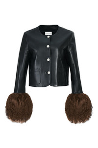 Introducing the Frida jacket that’s effortlessly elegant and guaranteed to keep you looking chic all season long. Perfect to pair over a dress or dress down with jeans. Features removable fur trim cuffs, exterior pockets. DETAILS - 100% Genuine Premium Leather - Detachable Genuine Mongolian Cuffs - Lining: Polyester - Exterior Pockets - Delicate Dry Clean Only SIZE & FIT Measurements based on Size S: - Garment Length: 19" - Bust: 38" - Shoulder Length: 15" - Sleeve Length: 23"