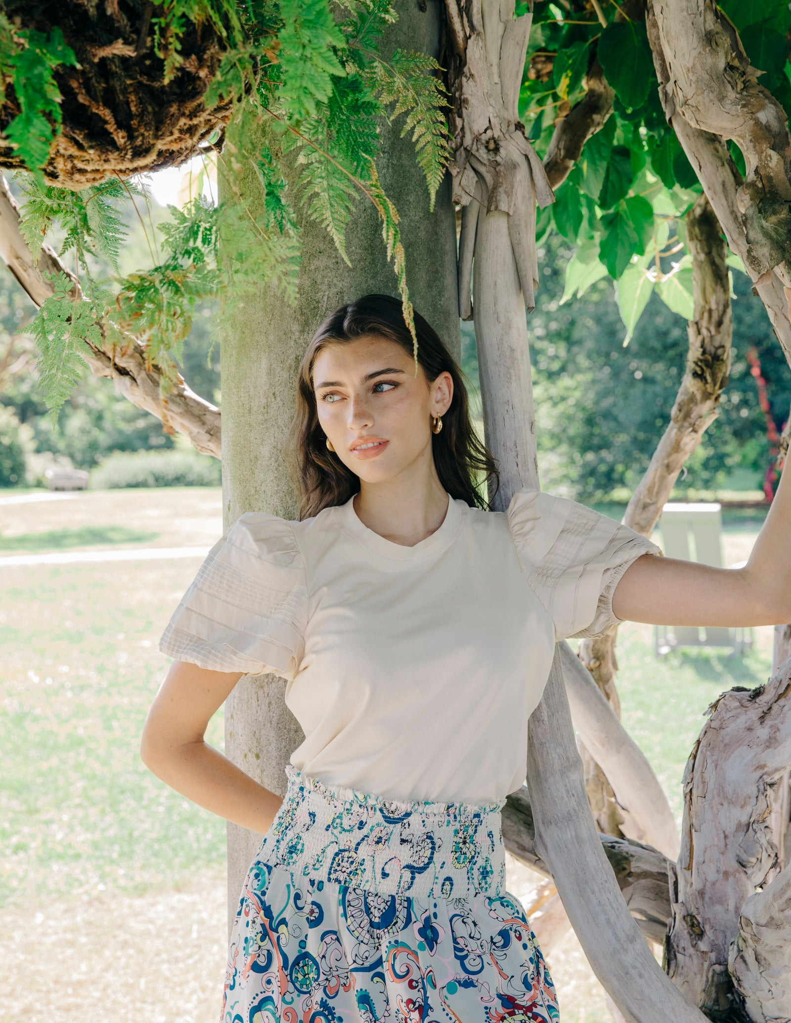 The Dylan Top brings a bold twist to the everyday tee with sculptural pintuck puff sleeves and a vibrant hue.