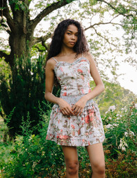 The Linnia Mini Skirt in Battersea Floral is a classic Love the Label silhouette with a smocked waistband, self ruffle trim, pin tuck pleats, and a flirty gathered body. Match back to the Battersea Floral for an effortless set.