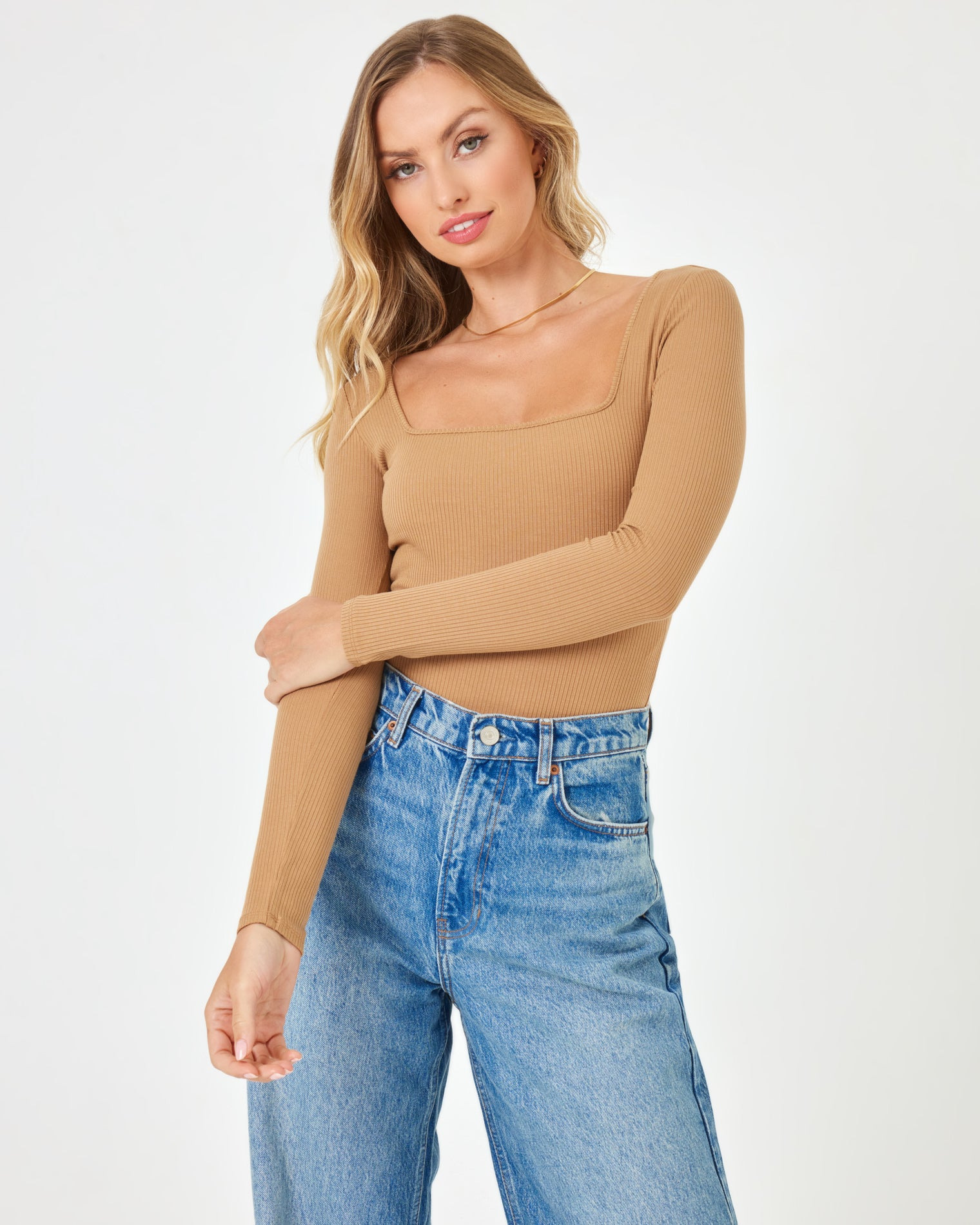 This body suit is absolutely bangin'! The Amore is a thong style with square neckline + long sleeves. It was created to hug every curve with our form fitting yet super-soft rib material. - Square Neckline - Longlseeve - Button Closure At Crotch - Thong - Form Fitting Rib Material - 90% Viscose 10% Elastane - Like all delicates, shape, color and fit are best preserved if hand washed in cold water. Lay flat to dry. - Style # AMOTP24 FIT - Model Measurements: Taylor, size S - Height 5'10, Bust 32", Waist 24", Hips 35 1/2"