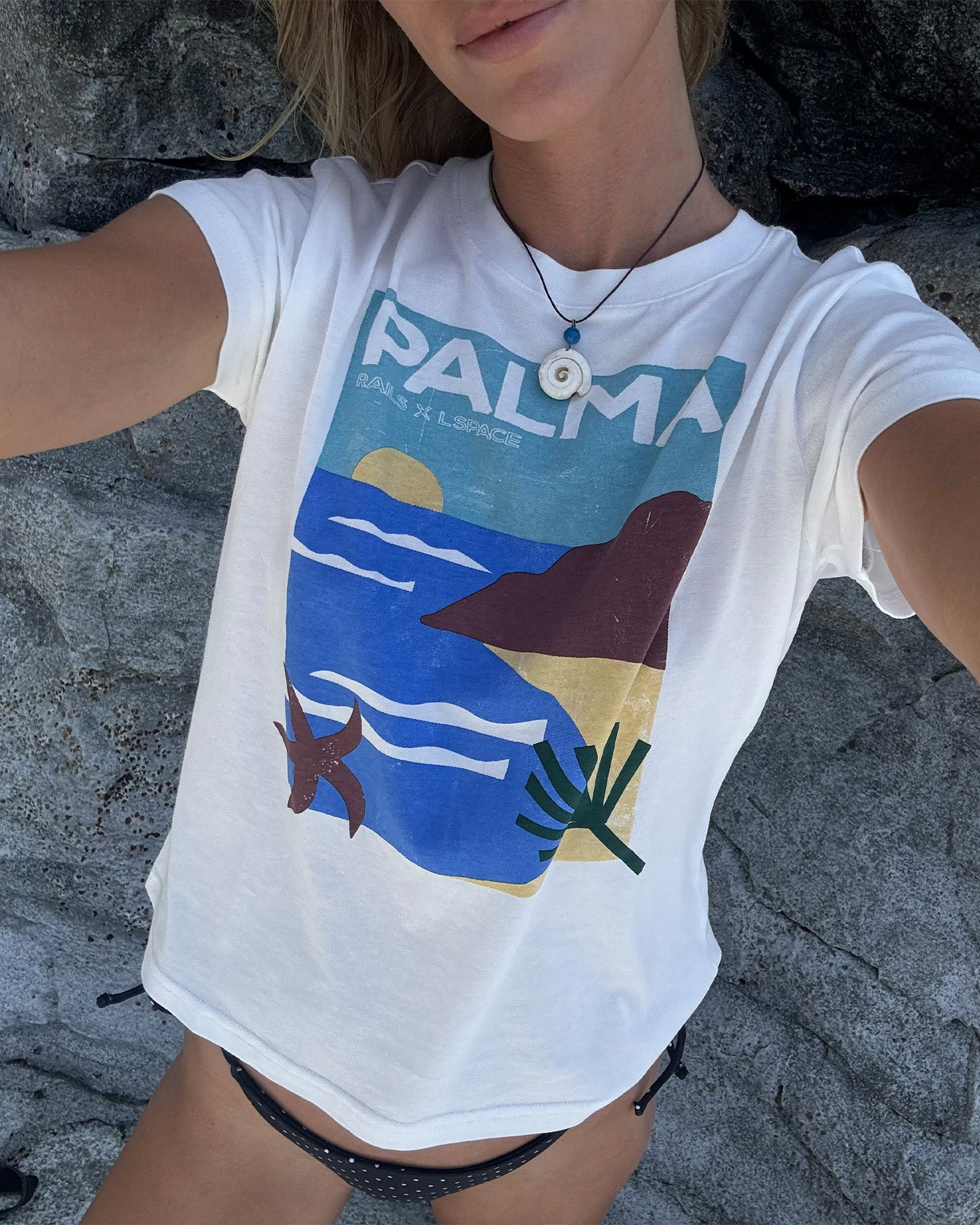 Transport yourself to the shores of Palma with this ultra-comfortable vintage cotton tee, featuring a classic fit and relaxed neckline. - Front Body Length: 23 1/4" - Measured from Small - 100% Cotton