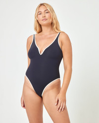 This may be our most flattering suit yet. The Co Co One Piece is serving up the looks with a deep-v, high leg, gorgeous open back and pop-seam color blocking. She even does double duty as a bodysuit when paired with pants, shorts or your fave skirt. - Deep V - High Leg - Pop Seam color blocking - Classic coverage - Size XS-XL - 80% Nylon, 20% Spandex - Style # CBCOMC23 FIT - Coverage: Classic - Model Measurements: Charlie, size S - Height 5'11, Bust 32", Waist 27", Hips 37" - Sydney, size XL - Height 5'11, Bust 41", Waist 34", Hips 42"