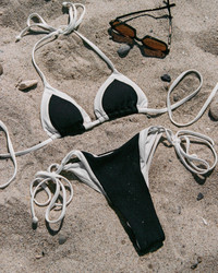 From a local beach day to the shores of the South of France, the Daria top can take you there. This triangle top features adjustable ties at the back and neck. Flip it around and you have a completely different style. This color block top with removable pads showcases both our solid jersey and rib fabric - plus it's fully lined. Wear it with any of the coordinating bottoms from the collection. - Colorblock Triangle Top - Adjustable Ties at Back & Neck - Removable Pads - Ribbed & Solid - Lined in Solid Jersey - 92% Nylon, 8% Spandex - Style # RHDRT26 FIT - Lura is wearing size S | Height 5'9, Bust 32", Waist 24", Hips 34"
