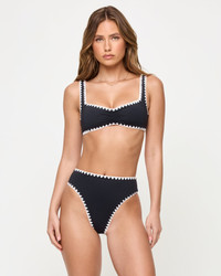 The Effie Top is a fun new bralette with eye-catching whip stitching. With wide straps, medium support and coverage, a shirred front and a cute little cut-out at the back this bikini top is doing the most. Mix and match it with any of the bottoms from this capsule. - Bralette - Shirred Front - Wide Straps - Cutout At Back - Removable Pads - XS-XL - 80% Nylon, 20% Spandex FIT - Medium Support - Medium Coverage - No Adjustability - Model Measurement: Ida, size S - Height 5’9”, Bust 3", Waist 24.5", Hips 34.5"