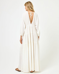 We have sustainable swim covered and now we're excited to offer eco-friendly apparel! The Eterna Cover-Up is a lightweight cotton stripe, elongated-tier dress with a front slip. It's super packable and looks chic paired over any of our bikinis or one pieces. - Cover Up - V Front - Elastic Cuffed Sleeve - 3/4 Sleeve - Leg Slit - Maxi - Eco Woven Linen - 71%Viscose, 19%Cotton, 10%Modal - Style # EETERT25 FIT - Model Measurements: Lura, size S - Height 5'9, Bust 32", Waist 24", Hips 34"