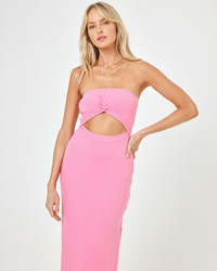 Think of this little number as the Nico's hot, older sister. Our updated take on a strapless, ribbed, cut-out dress is here with the Kierra. A leg slit, cut-out and twist under the bust give this midi length dress that main character energy. - Strapless dress - Midi length - Leg slit - Cutout under bust - Twist under bust - Size XS-XL - 90% Viscose 10% Elastane - Style #KIEDR24 FIT - Model Measurements: Lura, size S - Height 5'9, Bust 32", Waist 24", Hips 34"