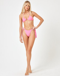 You're going to go crazy for the KiKi! Get ready to soak up all the compliments when you wear them. These tanga bikini bottoms offer minimal coverage so you can show off those buns! Side ties, metal D rings and a mid-rise complete the look. - Side Tie - Tanga Coverage - Mid Rise - Printed Bottom - Metal D Rings - Size XS-XL - 80% Nylon/ 20% Spandex - Style # LSKIG24 FIT - Coverage: Tanga - Model Measurements: Lura, size S - Height 5'9, Bust 32", Waist 24", Hips 34"