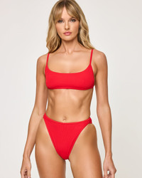 High waist meets high leg in the Kourt Bikini Bottom. This classic-coverage cutie comes in four bold new juicy colors and can be worn with the coordinating Kourt top or any of the other styles from our iconic ribbed collection. - French Cut - Low Rise - Classic Coverage - Ridin High Rib - Size XS-XL - 92% Nylon/8% Spandex - Style # RHKOC25 FIT - Lura, size S - Height 5'9, Bust 32", Waist 24", Hips 34"