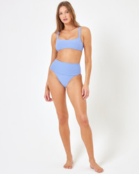 We raised the bar on our best selling high waist bikini bottoms and they're here in three new colors as part of the LSPACE x Anthropologie collab. The fiber in the Desi Bikini Bottom is made from 100% recycled materials - using REPREVE® - a high quality performance fiber included in our "Eco Chic Off the Grid" collection. These have an ultra-flattering banded waist and classic coverage. - High-waist bottom - Size XS-XL - 82% recycled poly, 18% spandex - Style #OGJET20A FIT - Coverage: Classic - Model measurements: Daria, size S - Height 5’9.5”, Bust 34, Waist 24.5, Hips 36