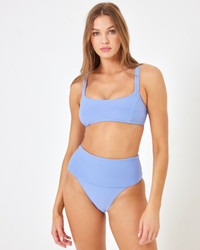 Part of our "Eco Chic Off the Grid" collection, the fiber in this pullover bikini top is made from 100% recycled materials - using REPREVE® - a high quality performance fiber. The Jess Top features ribbed fabric and a comfy double banded back. It's a style you can feel good about and it's here in three new colors as part of the LSPACE x Anthropologie collection. - Pull-over bralette-style top - Cut-out back detailing - Size XS-XL, D Cup, DD Cup - 82% Recycled Poly/18% Spandex - Style #OGJET20A FIT - Coverage: Maximum - Support: Maximum - Model Measurements: Daria, size S - Height 5’9.5”, Bust 34, Waist 24.5, Hips 36