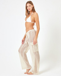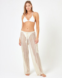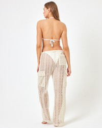 We all love a good cargo and the Sundown Pant is an elevated take on a classic look. Crafted from detailed Ibiza Lace fabric, these have a wide leg that features flap pockets on both thighs, a drawstring waist with tassels that allow you to wear these either high-waisted or low-waisted. - Wide Leg Pant - Pockets With Pocket Flaps On Both Thighs - Drawstring Waist With Tassels - Can Wear High Waist Or Low Waist - Size XS-XL, 1X-3X - 86% Polyester/14% Cotton - Style # SNDPT24A - Model Measurements: Daria, size S - Height 5’9.5”, Bust 34, Waist 24.5, Hips 36
