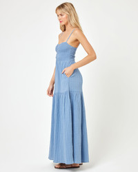 You're going to look smokin' hot in this smocked bodice masterpiece. The Mallorca Dress is a maxi that really is doing the most. Thin spaghetti straps and a one-tier skirt let this one move with you. - Full Length Dress - Adjustable Straps - Smocked Bodice - Tiered Skirt - Size XS-XL - 100% Cotton - Like all delicates, shape, color and fit are best preserved if hand washed in cold water. Lay flat to dry. - Style # MALDR24 FIT - Model Measurements: Lura, size S - Height 5'9, Bust 32", Waist 24", Hips 34"