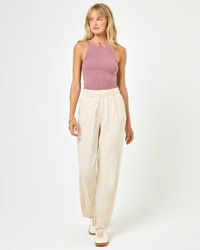 Take it back with retro styling made new with the Rewind Tank. Muscle sleeves, a fitted body and crop style give this tank some edge. Pair with your fave denim for an effortless everyday look. - Tank - High neck - Wide racerback - Ribbed - Size XS-XL - 95% Cotton, 5% Spandex - Style # REWTP25 FIT - Model Measurements: Lura, size S - Height 5'9, Bust 32", Waist 24", Hips 34"