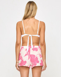 These linen pull-on shorts are the epitome of classic style and they're now available in our fun new animal print. An adjustable tie waist and pockets are just a few of the reasons we keep reaching for these closet staples. Pair them with the matching button-down tunic for a cute set that's perfect for the beach or brunch. - This style runs small, we recommend sizing up. - Linen Pull on Shorts - Adjustable Tie Waist - Side Pockets - 100% Linen - Style # RIOSH23 FIT - Model Measurements:" - Madison, size S - Height 5’9”, Bust 34", Waist 23 1/2", Hips 35"