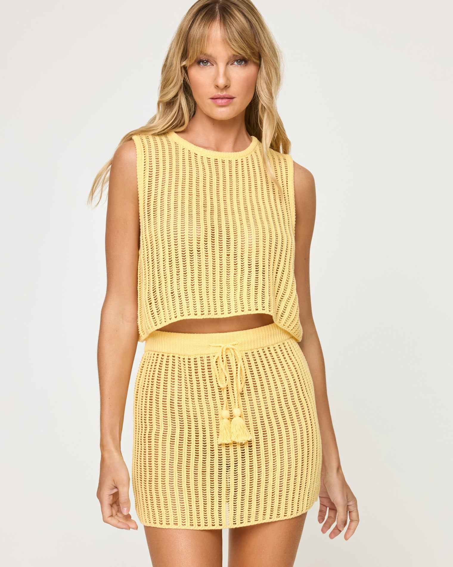 We just love when a top puts in overtime with some double duty. The Sander Top is our latest crochet tank offering and she can be worn as a bathing suit cover-up or paired with a bralette and denim for your everyday style. Looking for a matching set? Pair this crop with the coordinating Sander Skirt. - Crop - Tank - Sander crochet knit - Size XS-XL - 100% Cotton - Style # SANTP25 - Model Measurements: Lura, size S - Height 5'9, Bust 32", Waist 24", Hips 34"