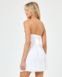 From the beach to a bbq, the Under The Sun Dress can take you there in style. This mini is fun and flirty with its wrap-around halter neck that can be converted to be worn strapless. Girl math for the win here, this one is basically a BOGO. - Mini Dress - Wrap Around Halter Neck - Can Be Worn Strapless - Ruched Panel At Back - Size XS-XL - 100% Linen - Like all delicates, shape, color and fit are best preserved if hand washed in cold water. Lay flat to dry. - Style # UTSDR24 FIT - Model Measurements: Lura, size S - Height 5'9, Bust 32", Waist 24", Hips 34"