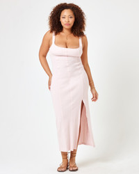 With seams that mimic boning and our thick, cotton micro rib material, the Vivienne Dress is a special piece to add to your closet. You'll feel your best in this fitted midi dress that also comes complete with a scoop neck, low back and leg slit. - Scoop Neck - Tank Straps - Princess Seaming - Low Back - Size XS-XL - 95% Cotton 5% Spandex - Style # VIVDR24 FIT - Model Measurements: Lura, size S - Height 5'9, Bust 32", Waist 24", Hips 34" - Amber, size XL - Height 5'9, Bust 41", Waist 32 1/2", Hips 44"