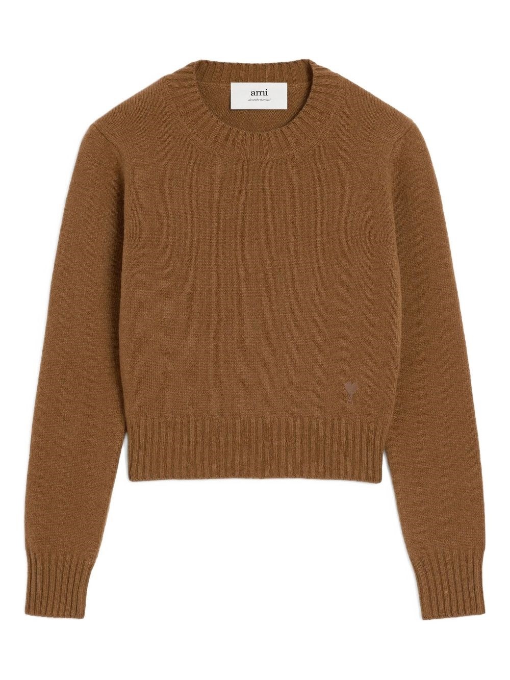 BROWN CASHMERE AMI DE COEUR CREWNECK SWEATER