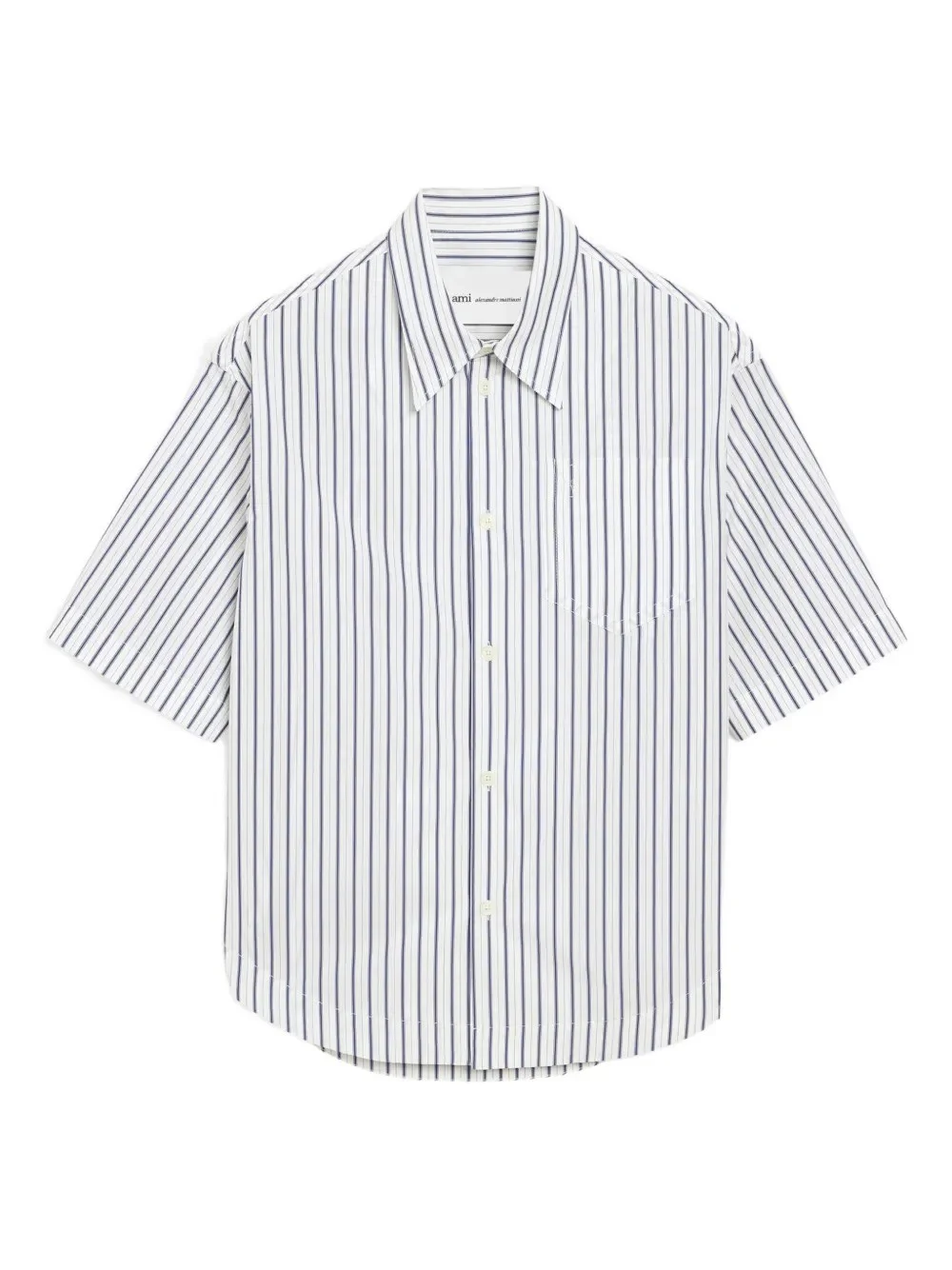 WHITE STRIPED COTTON SHORT SLEEVE AMI DE COEUR WIDE SHIRT