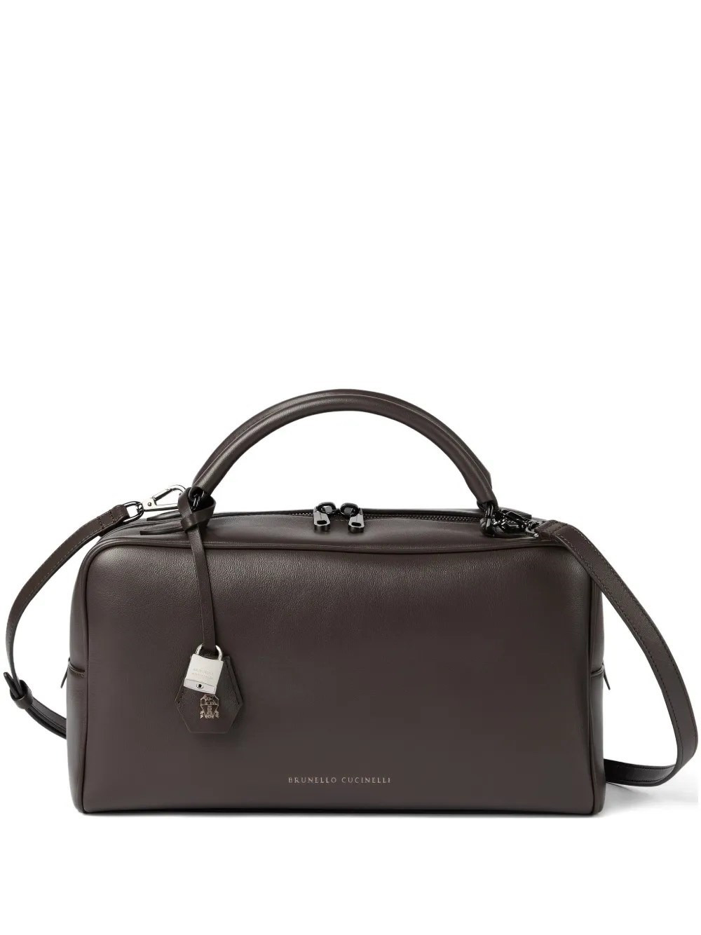 one handle zip closure embossed logo detachable and adjustable strap 100% leather 34 cm x 13,5 cmx 21 cm Model code: MBGED2632 Variant code: C8279