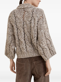 Dazzling chiné cable knit cardigan in soft wool, cashmere and mohair