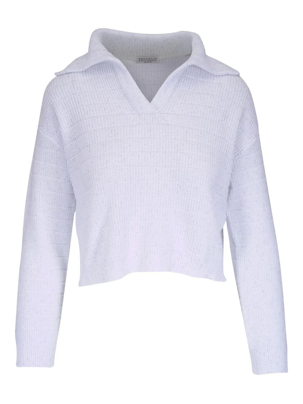 Textured half English rib knit polo shirt in cotton Diamond yarn