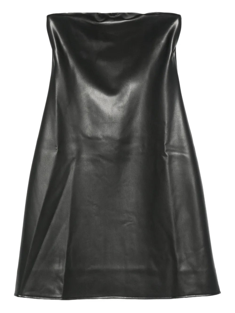 Short bustier stretch leather effect dress with lingerie hook at back and AC logo on the front. 54% polyurethane, 46% polyester Model code: 425JDRO749PU0049 Variant code: 9999
