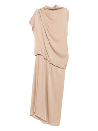 draped high-neck midi dress