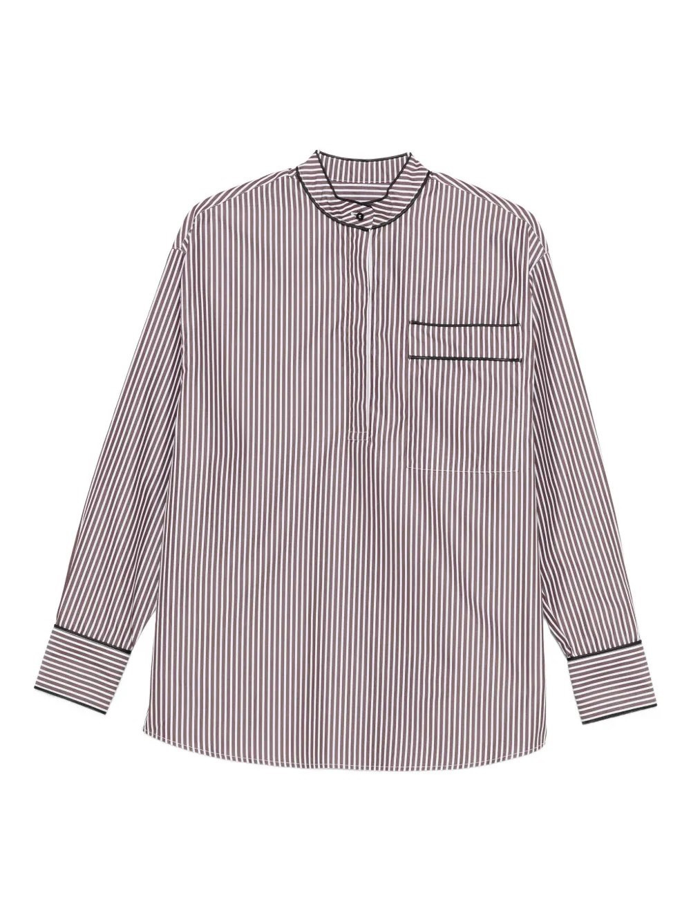 stripe shirt long sleeve mandarin collar 100% cotton Model code: VERNA Variant code: IVORY/BROWN