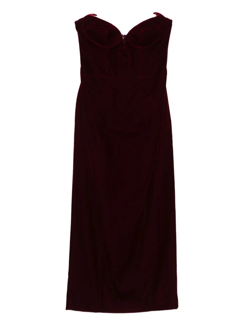 strapless velvet midi dress