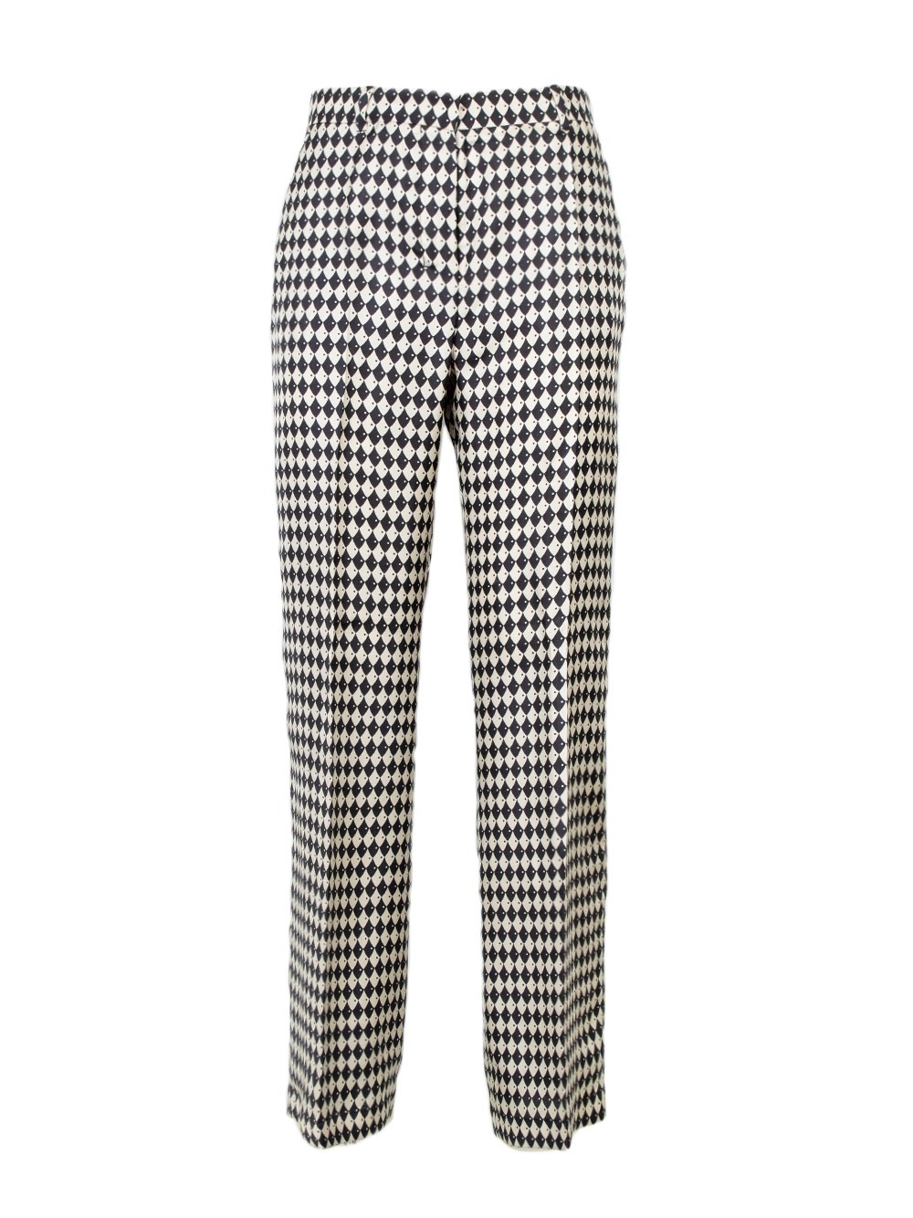 printed silk trousers flare bottom 100% silk concealed hook closure and zip Italy size Model code: RIETI Variant code: 001