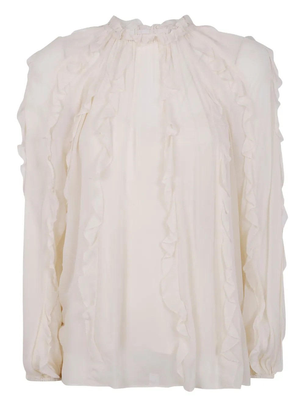 ruffled high-neck blouse