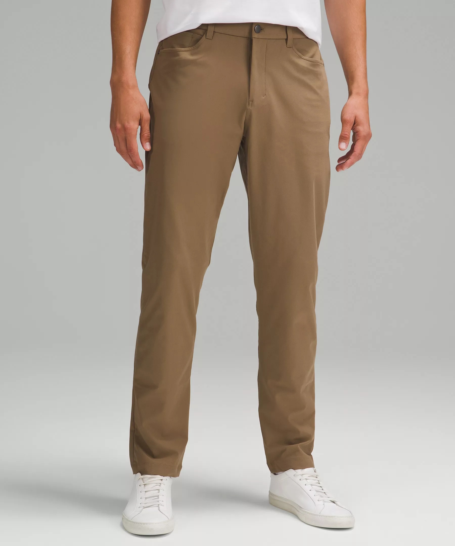 Everyday Performance, Warpstreme™ Fabric Everyday performance Shape retention Quick-drying Four-way stretch Breathable Wrinkle-resistant Feels smooth, falls softly away from body This product contains recycled polyester made from repurposed plastic waste Classic Fit, 28" Length You asked, we listened. Based on guest feedback, this classic fit still has a streamlined look from hip to hem, but now has a roomier feel in the glutes and thighs Our ABC™ technology uses an ergonomic gusset to remove tension from the crotch of our pants Product Features Hand pockets, a phone pocket, and an internal sleeve to stash coins Back pocket with hidden zippered compartment Flip up the cuffs to reveal reflective details Material and care Materials Pocket lining: 100% Recycled polyester Body: 53% Elastomultiester47% Recycled polyester Care Wash with like colours Machine wash cold Do not bleach Tumble dry low Do not iron Do not dry clean Imported
