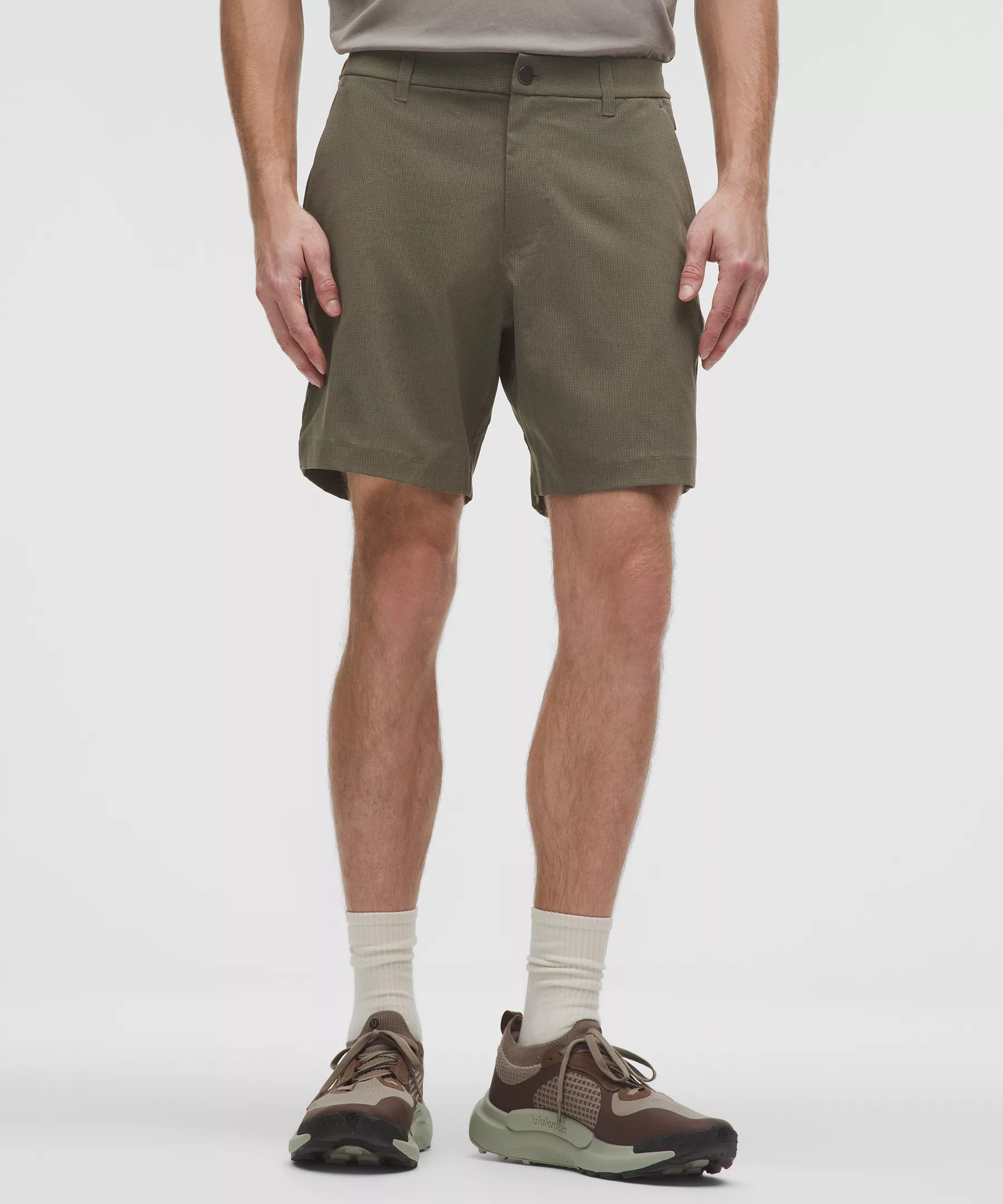 Designed for Casual Naturally Breathable, WovenAir™ Fabric - Naturally breathable - Four-way stretch - Sweat-wicking - Quick-drying - This product contains recycled polyester made from repurposed plastic waste Classic Fit, 7" Length - Streamlined fit that gives glutes and thighs breathing room - Our ABC™ (Anti-Ball-Crushing) technology uses an ergonomic gusset to remove tension from the crotch of our pants so you can move in comfort Product Features - Hand pockets with hidden phone sleeve - Discreet zippered seam pocket - Hidden snaps mean the back pockets won't gape Material and care Materials Pocket Lining: 100% Recycled Polyester Care Machine Wash Cold - Do Not Bleach - Tumble Dry Low - Do Not Iron - Do Not Dry Clean - Wash With Like Colors