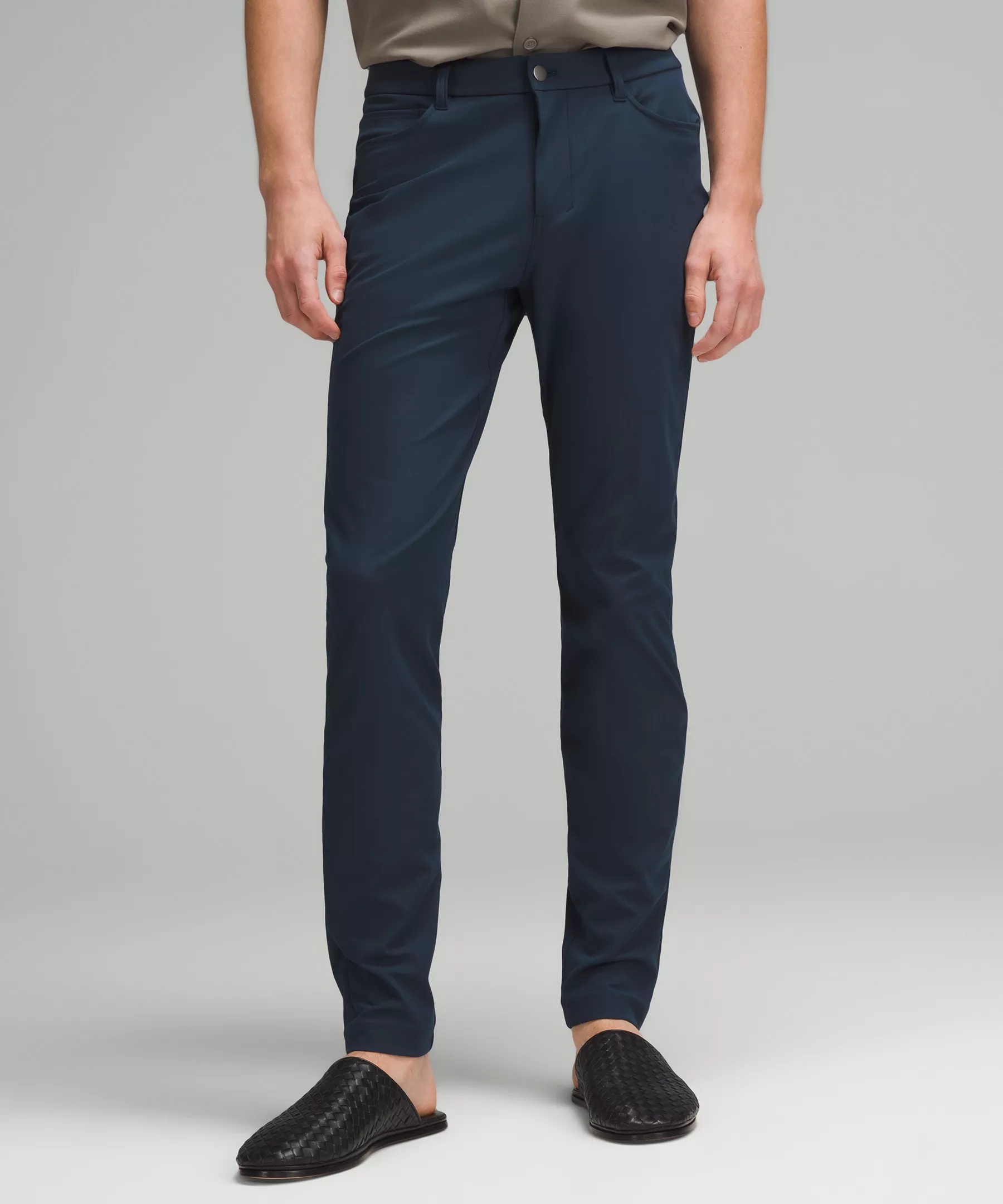 Everyday Performance, Warpstreme™ Fabric Everyday performance Shape retention Quick-drying Four-way stretch Breathable Wrinkle-resistant Feels smooth, falls softly away from body Skinny Fit, 32" Length Our ABC™ technology uses an ergonomic gusset to remove tension from the crotch of our pants Close-to-body fit in the glutes, thighs, and calves Product Features Flip up the cuffs to reveal reflective details Hidden zippered pocket Material and care Materials Pocket Lining: 100% Recycled Polyester Body: 53% Elastomultiester47% Recycled Polyester Care Wash with like colours Machine wash cold Do not bleach Tumble dry low Do not iron Do not dry clean Imported