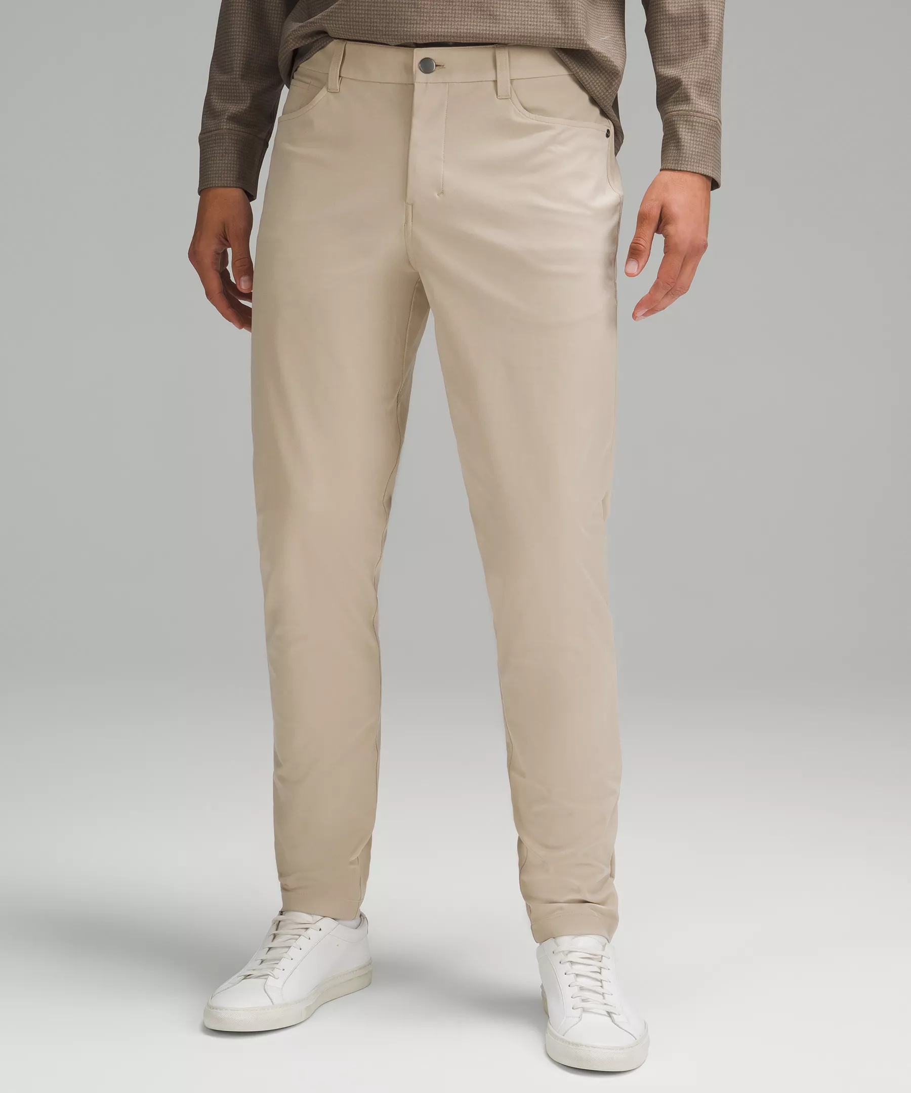 Everyday Performance, Warpstreme™ Fabric Everyday performance Shape retention Quick-drying Four-way stretch Breathable Wrinkle-resistant Feels smooth, falls softly away from body This product contains recycled polyester made from repurposed plastic waste Slim Fit, 37" Length Slim fit that skims glutes and thighs Our ABC™ (Anti-Ball-Crushing) technology uses an ergonomic gusset to remove tension from the crotch of our pants so you can move in comfort Product Features Hand pockets, a phone pocket, and an internal sleeve to stash coins Back pocket with hidden zippered compartment Flip up the cuffs to reveal reflective details Material and care Materials Pocket Lining: 100% Recycled Polyester Body: 53% Elastomultiester47% Recycled Polyester Care Machine Wash Cold Do Not Bleach Tumble Dry Low Do Not Iron Do Not Dry Clean Wash With Like Colors
