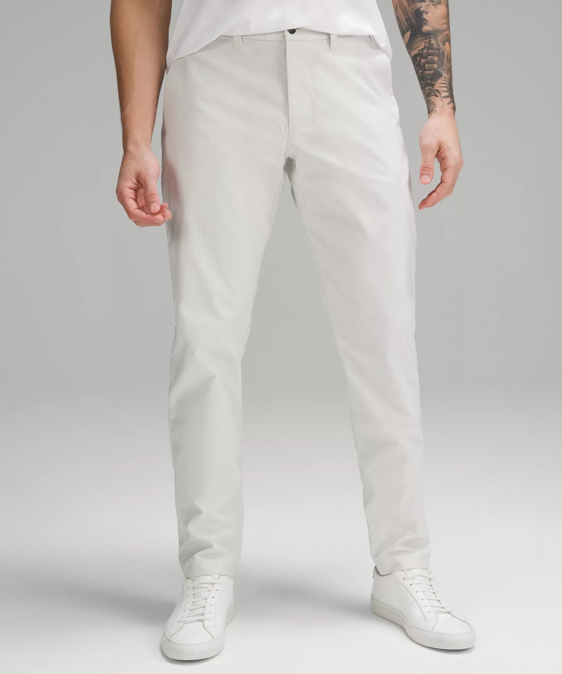 Water-Resistant, Twill Fabric Water-resistant Lightly textured New Slim Fit, 34" Length You asked, we listened. Based on guest feedback, this slim fit still skims your leg from hip to hem, but now has a roomier feel in the glutes and thighs Our ABC™ technology uses an ergonomic gusset to remove tension from the crotch of our pants Product Features Discreet zippered pocket on side seam Back welt pockets with hidden snaps Flip up the cuffs to reveal reflective details Material and care Materials Pocket lining: 100% Recycled polyester Body: 55% Polyester45% Elastomultiester Care Wash with like colours Machine wash cold Do not bleach Tumble dry low Do not iron Do not dry clean Imported