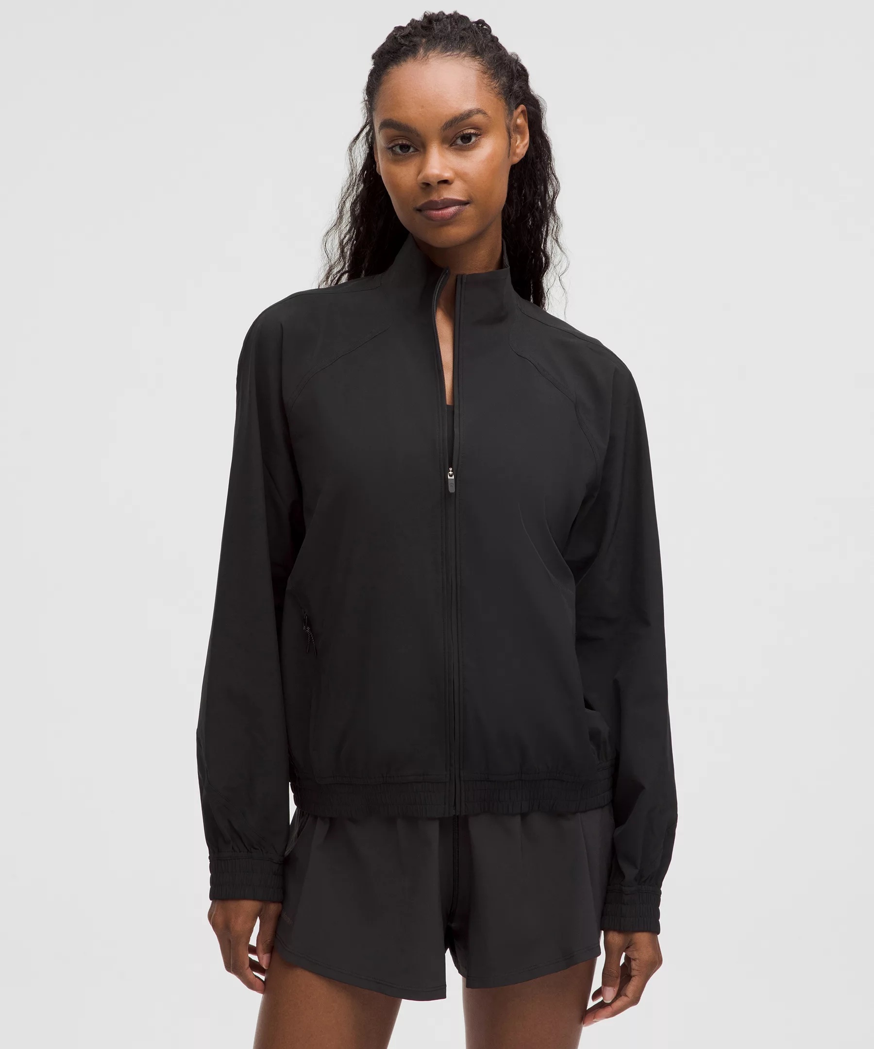 Designed for Running and Training Lightweight, Swift Fabric - Lightweight - Four-way stretch - Sweat-wicking - Quick-drying - This product contains recycled polyester made from repurposed plastic waste Relaxed Fit, Hip Length - A loose fit with a little extra room - Sits below the waistband for moderate, everyday coverage Product Features - Zippered hand pockets with hidden phone sleeve - Locker loop for easy hanging Material and care Materials Lining: 77% Recycled Polyester23% Elastomultiester - Body: 86% Recycled Polyester14% Elastane Care Machine Wash Cold - Do Not Bleach - Tumble Dry Low - Do Not Iron - Do Not Dry Clean - Wash With Like Colors